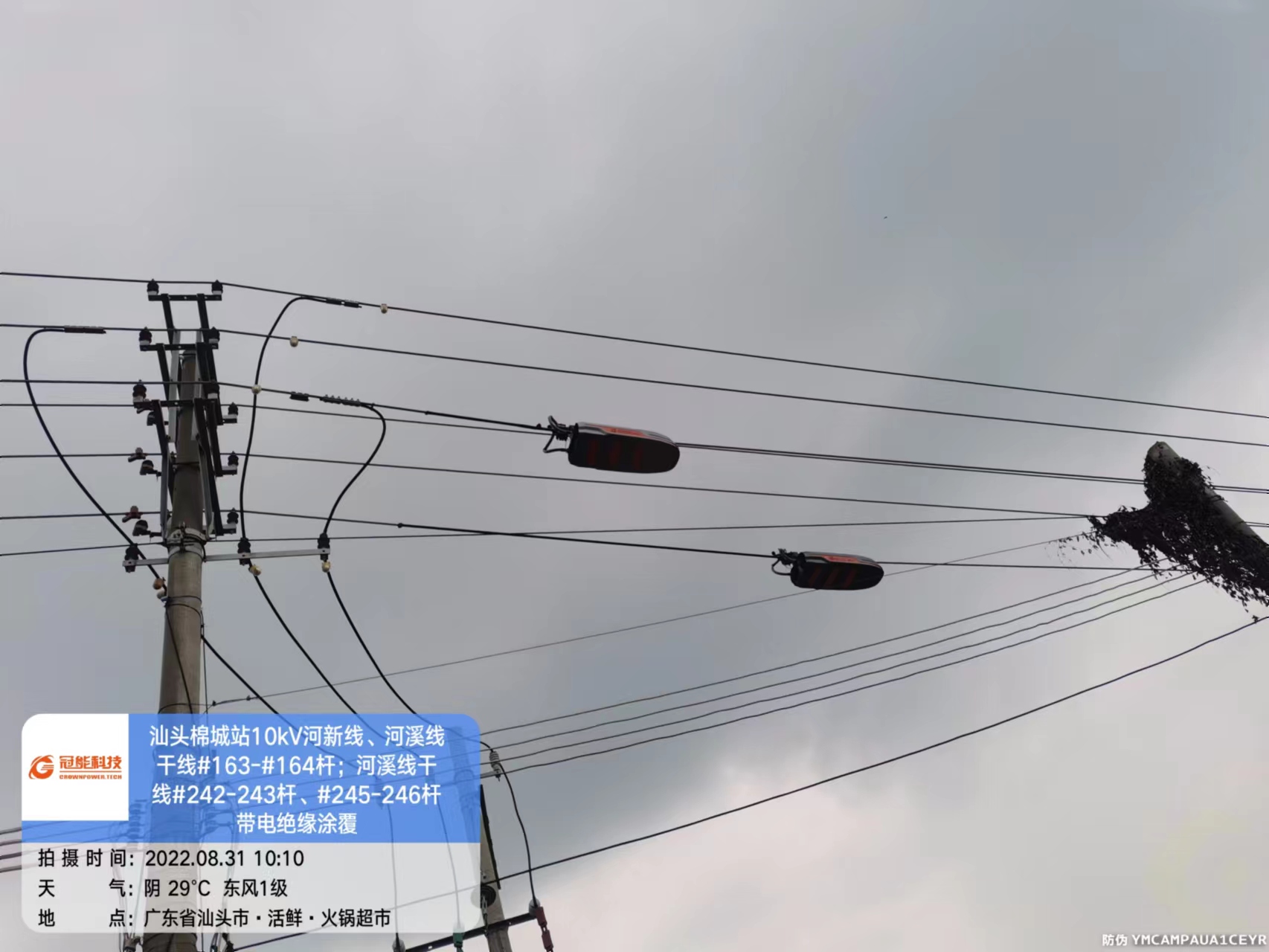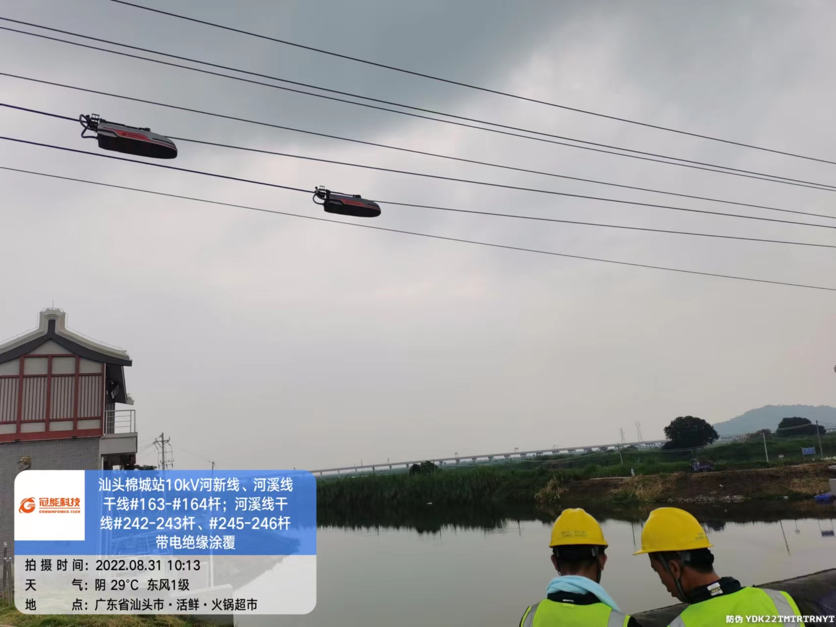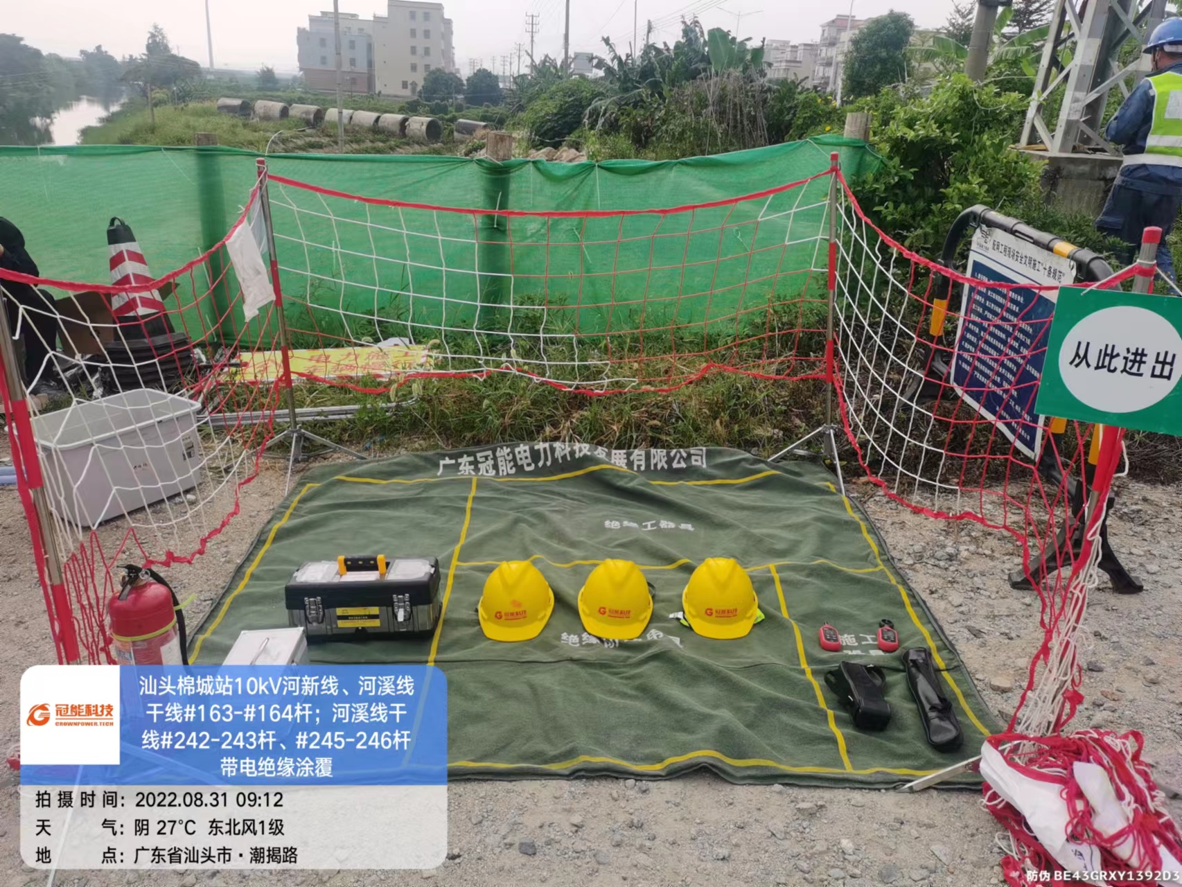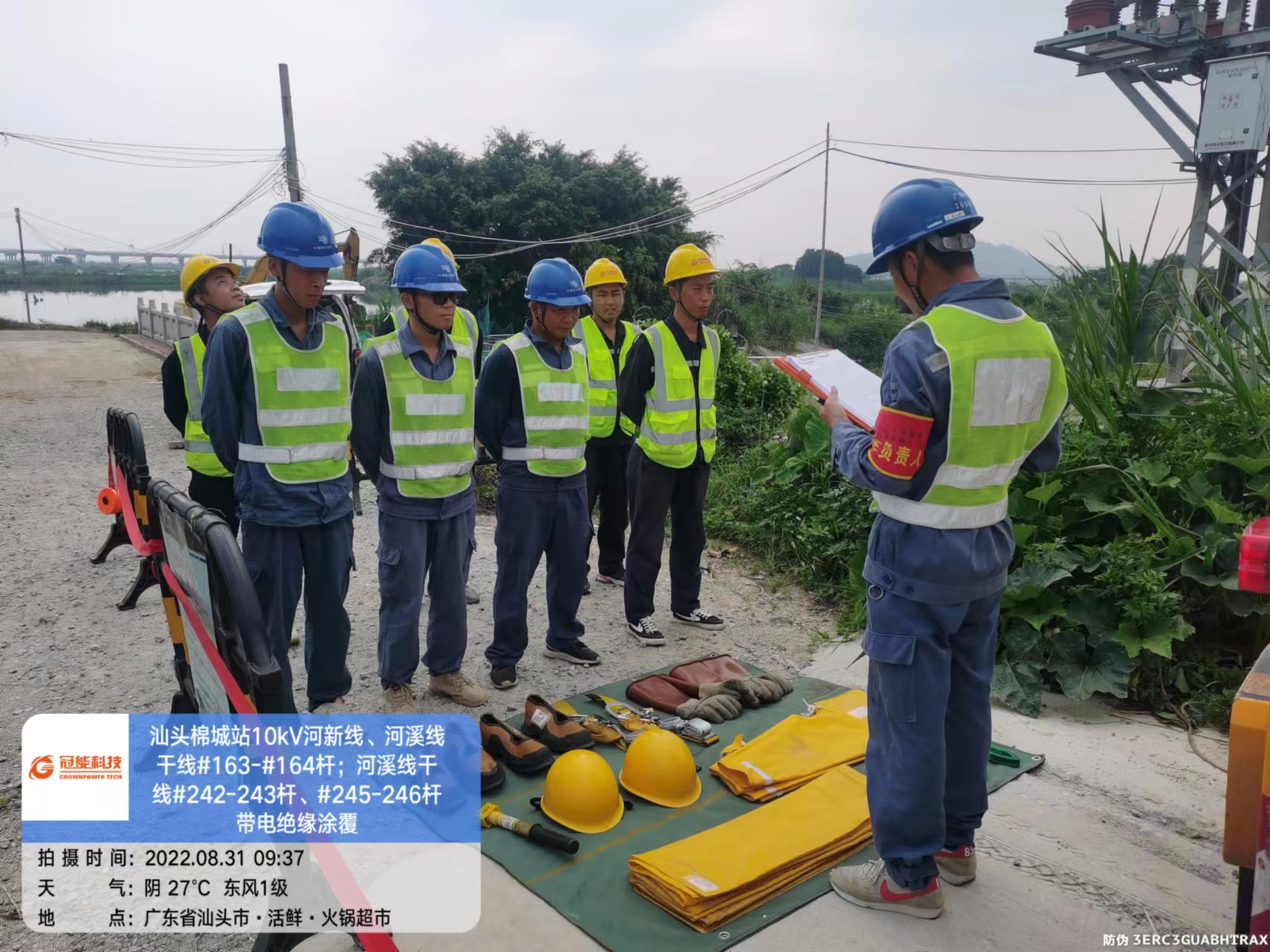 汕頭棉城站10kV河新線、河溪線干線#163-#164桿;河溪線干線#242-243桿、#245-246桿帶電絕緣涂覆安全交底及涂覆過程