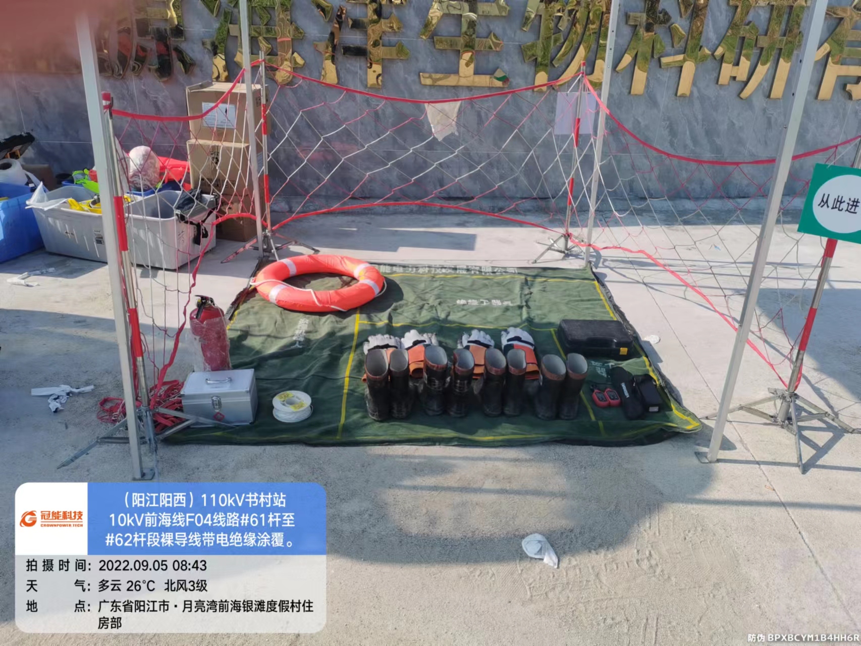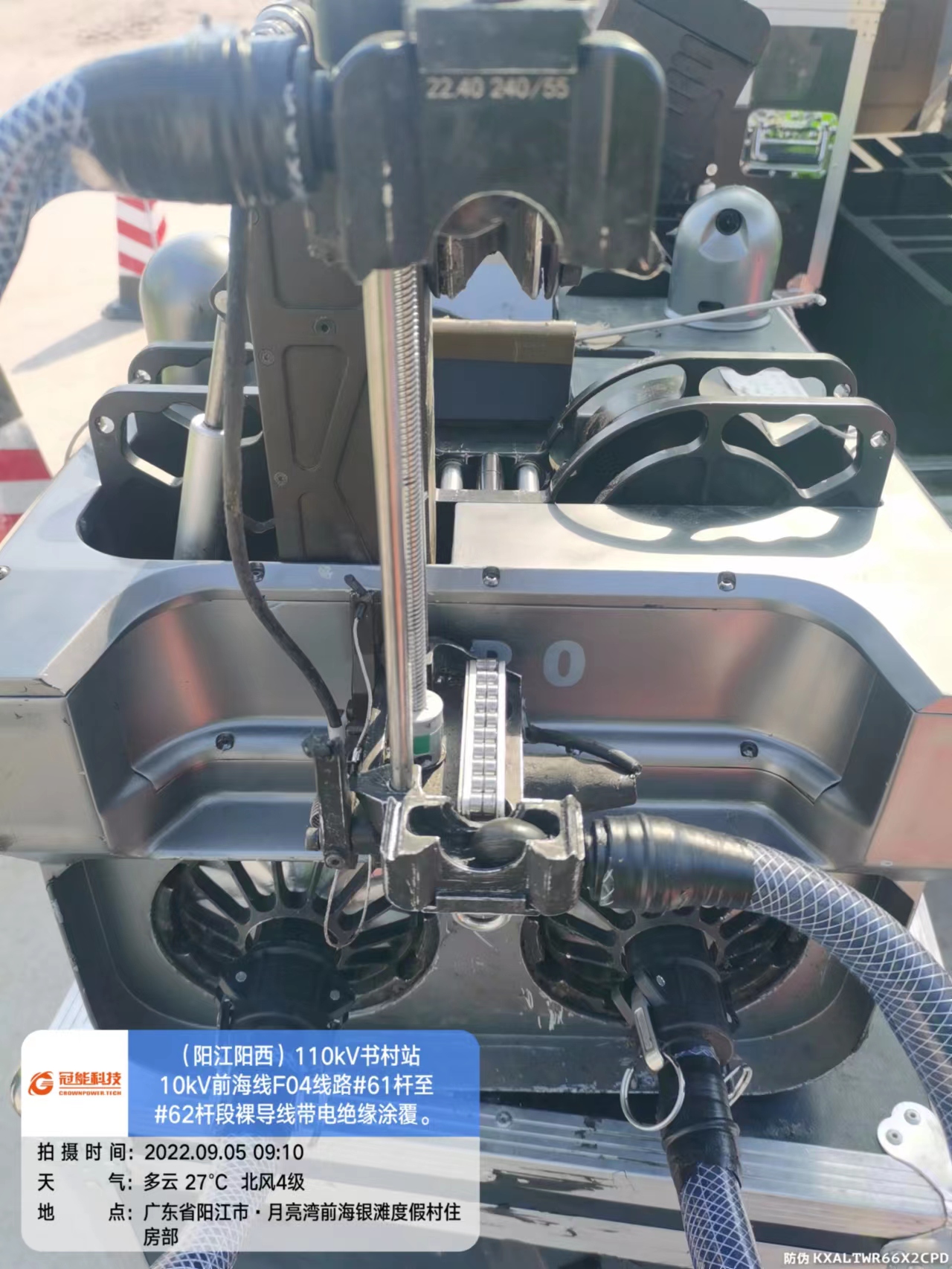 陽江陽西110kV書村站10kV前海線F04線路#61桿至#62桿段裸導線帶電絕緣涂覆及交底。