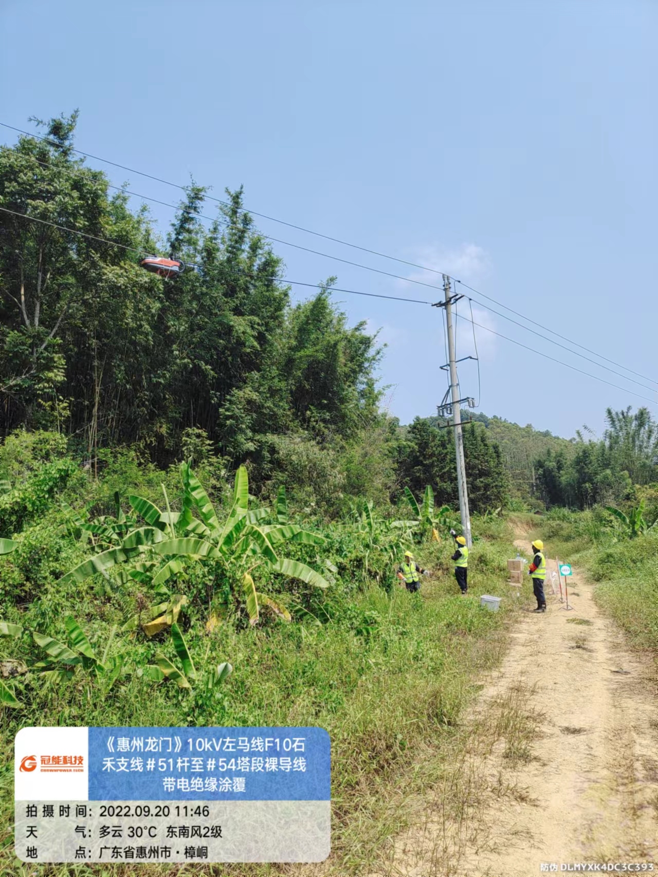 惠州龍門10kV左馬線F10石禾支線#51桿至#54塔段裸導線帶電絕緣涂覆