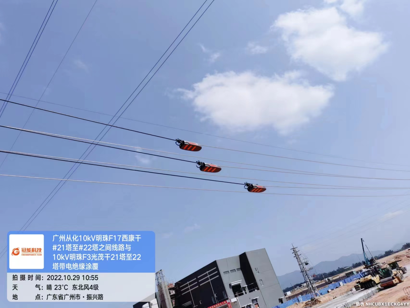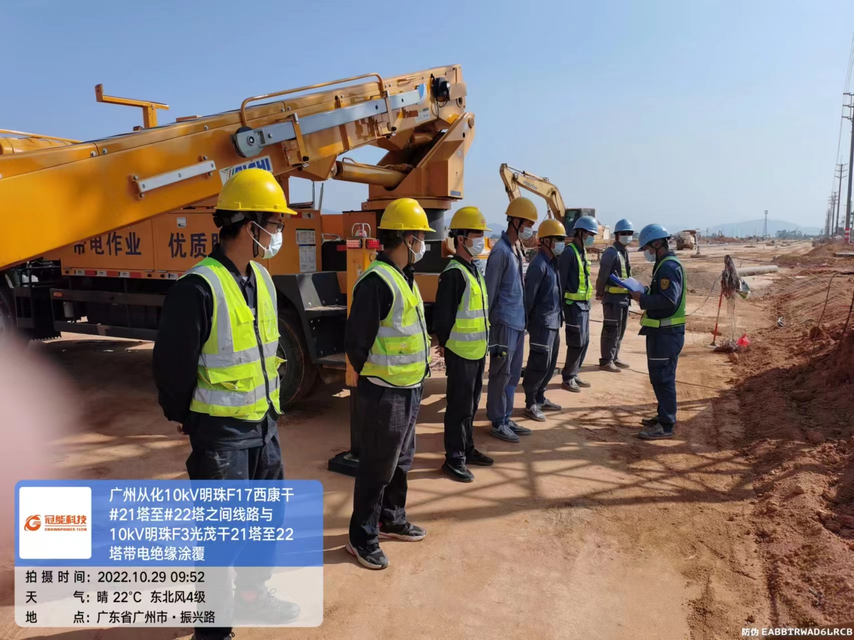 廣州從化10kV明珠F17西康干#21塔至#22塔之間線路與10kV明珠F3光茂干21塔至22塔帶電絕緣涂覆安全交底及涂覆過程