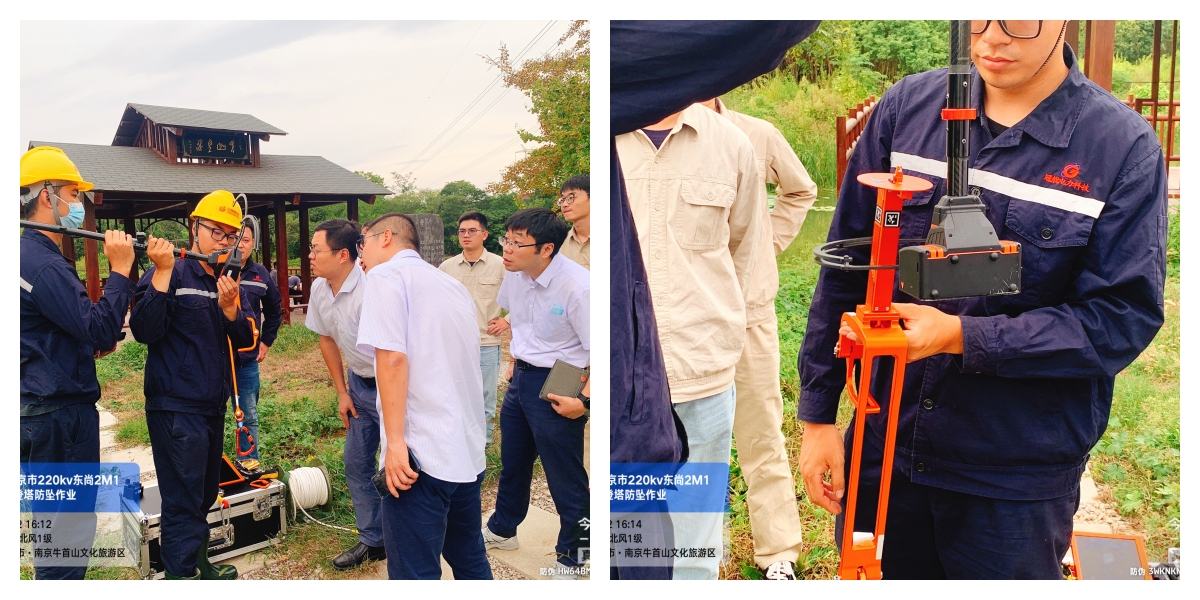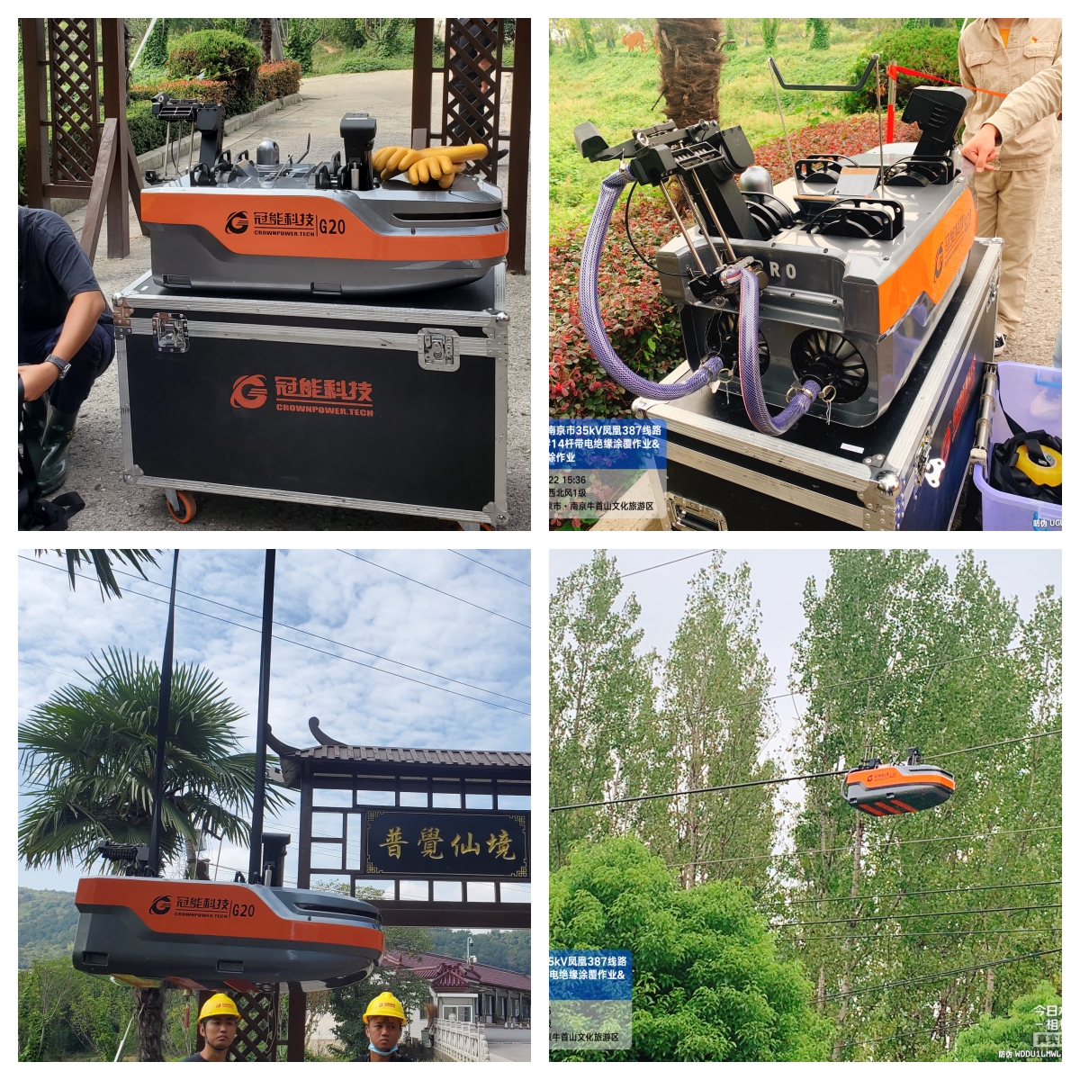 廣東冠能電力科技攜新型登塔防墜系統、帶電絕緣涂覆機器人、樹障帶電清除機器人來到江蘇南京,為35kV線路“帶電換裝”。