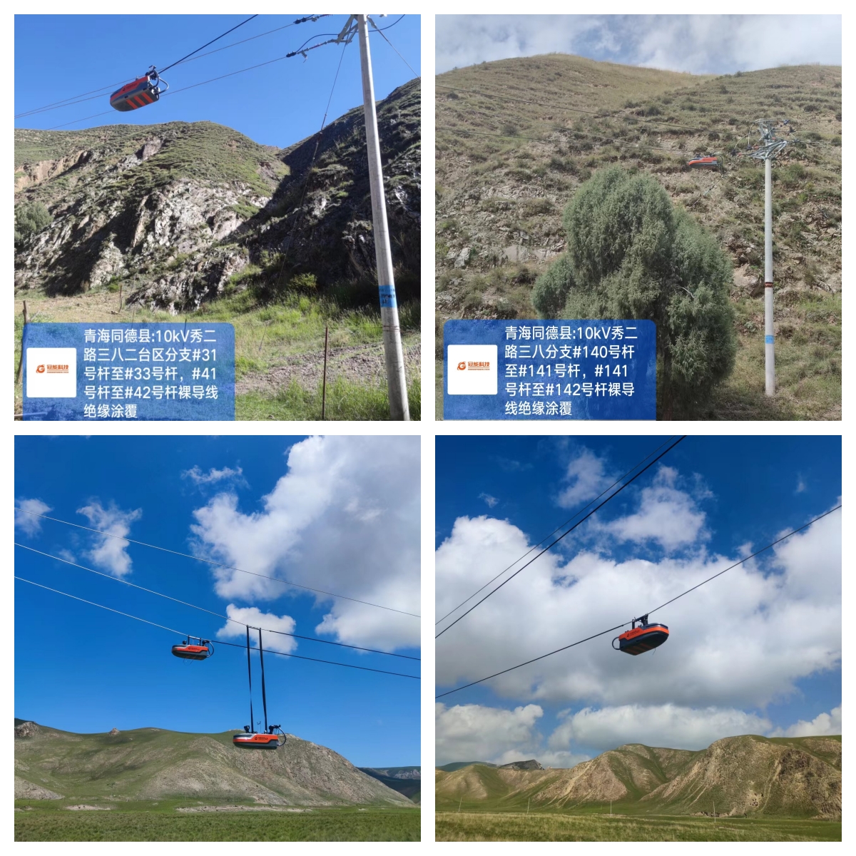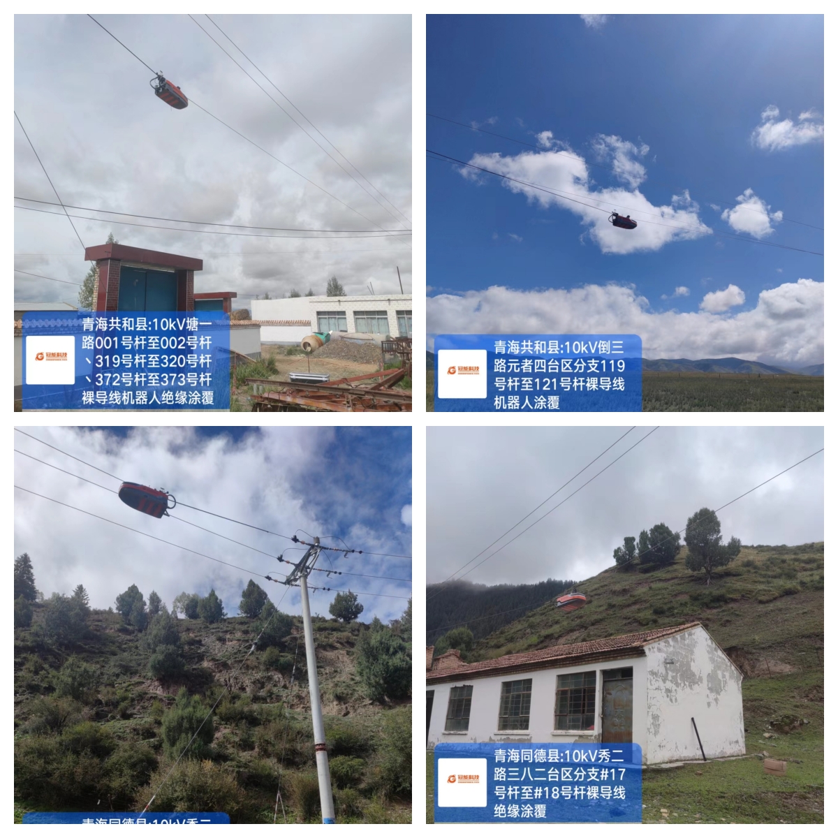 冠能科技技術服務團隊,攜帶帶電絕緣涂覆機器人和架空裸導線用自固化高分子輕質絕緣涂覆材料,從廣東來到青海,跨越2500公里,在青海共和縣、同德縣對10kV線路開展裸導線絕緣化涂覆項目,在裸導線外層涂上輕質絕緣涂料,為架空裸導線披上“保護服”。