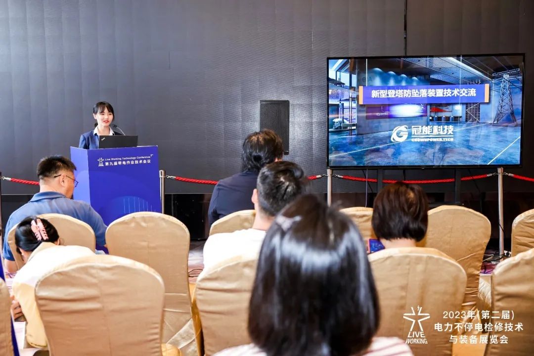 更值得一提的是,展會現場冠能技術人員李雨欣,受邀為演講嘉賓。細致分享了公司最新研發產品“新型登塔防墜落裝置”在登塔作業領域的應用創新,吸引了參展觀眾的目光。
