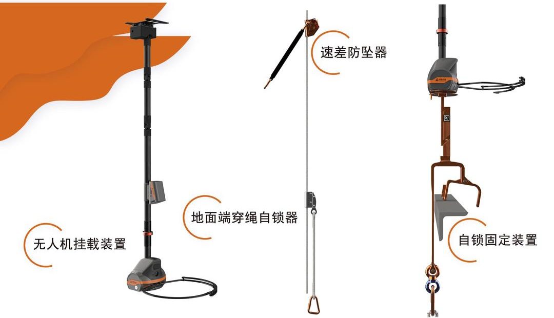 鑒于登塔過程中的安全防護問題仍是困擾當前電力系統安全生產中的一大難題,針對現有防墜工具的不足,冠能科技聯合佛山供電局試驗研究所共同研發出新型登塔防墜落裝置。在無需人員登塔預安裝及不改變作業人員登塔習慣的前提下,通過無人機搭載新型登塔防墜裝置飛到鐵塔頂端,利用裝置的重力自鎖緊機械機構實現裝置在塔頂的快速安裝與拆除,安保繩一端固定在新型登塔防墜落裝置上,另一端固定于塔底,登塔人員通過防墜器與安保繩連接后,形成完整的保護措施。有效減緩登塔人員心理壓力,完全避免作業人員登塔過程中墜落風險,有效保障了登塔人員的安全。