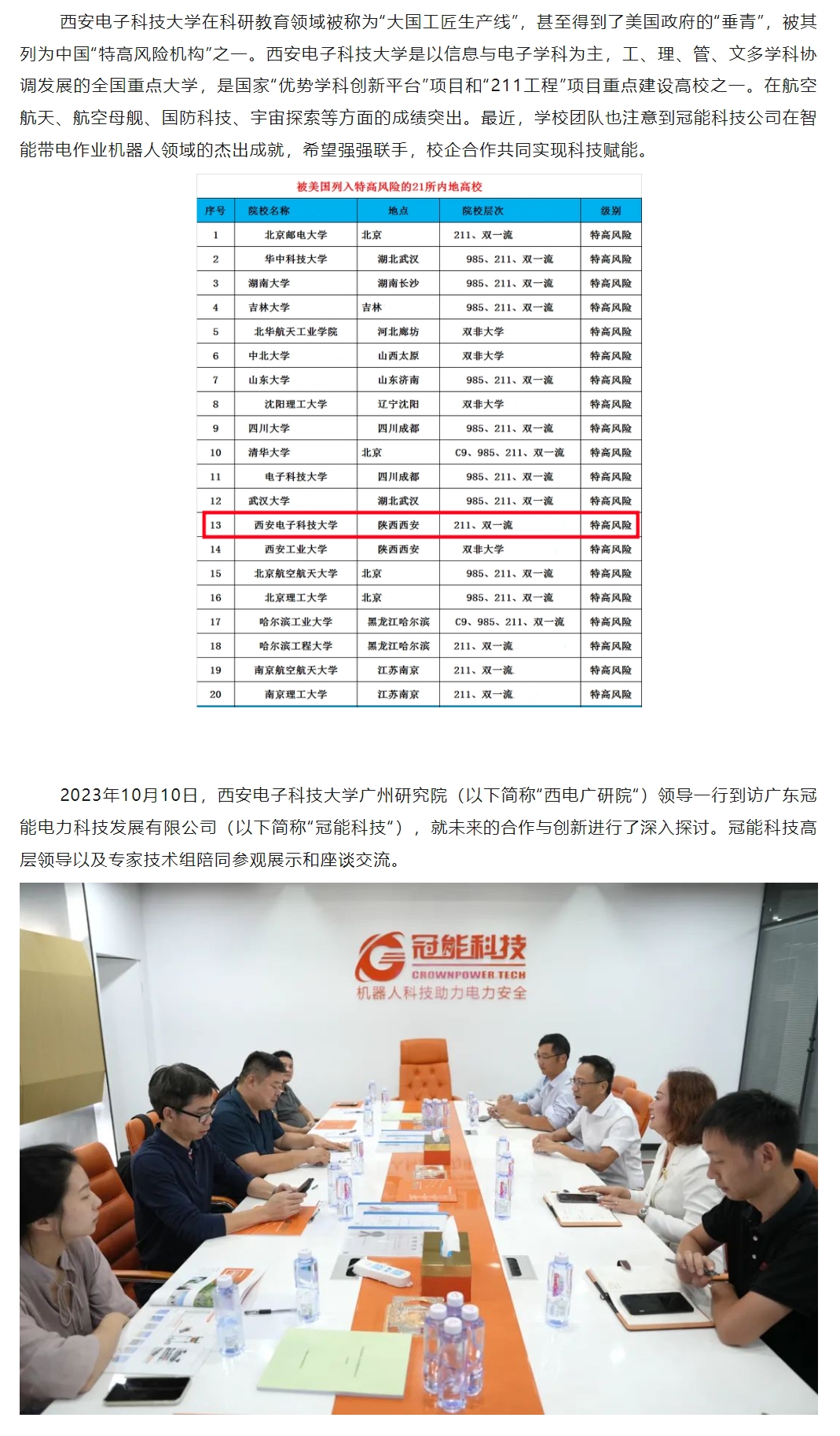 西安電子科技大學與冠能科技攜手合作:共同推動智能機器人研究與創新