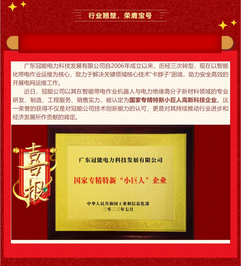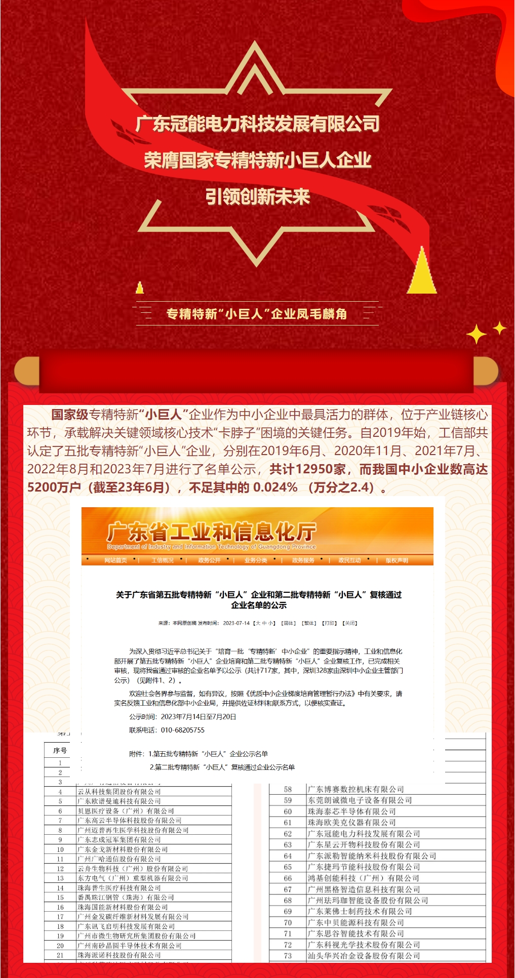 廣東冠能電力科技發展有限公司榮膺國家專精特新小巨人企業,引領未來電力科技創新
