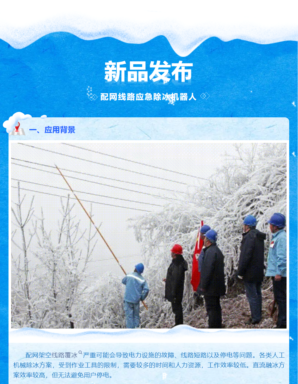 新品發(fā)布 | 配網(wǎng)線路應(yīng)急除冰機(jī)器人