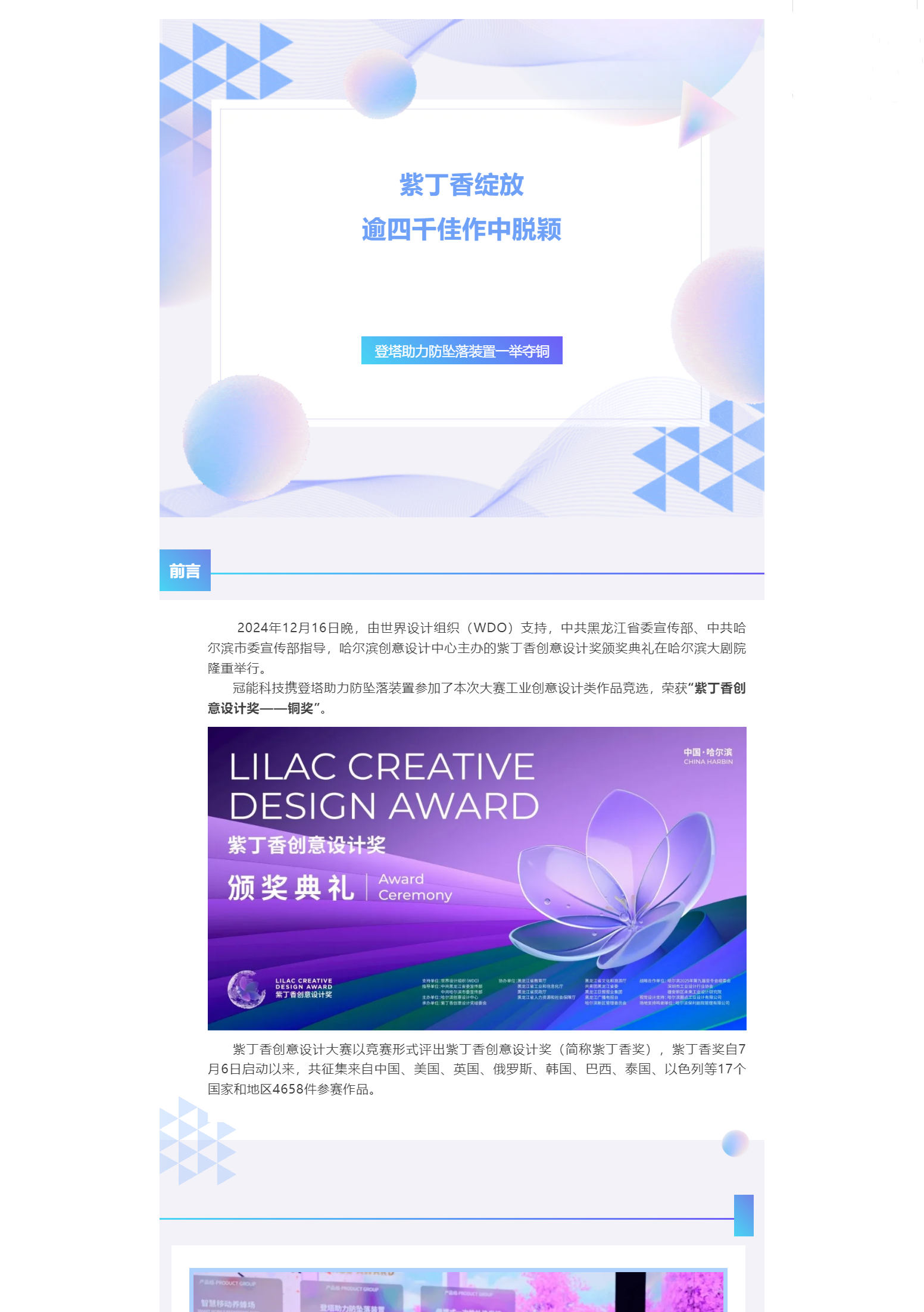 紫丁香綻放,逾四千佳作中脫穎——登塔助力防墜落裝置一舉奪銅