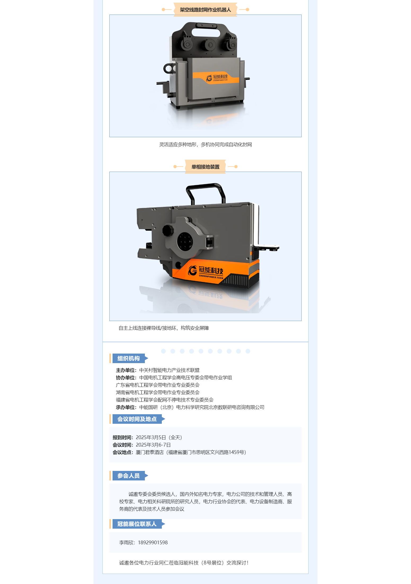 冠能科技邀您蒞臨帶電作業專委會成立會議暨 2025 年帶電作業重點專項學術研討會