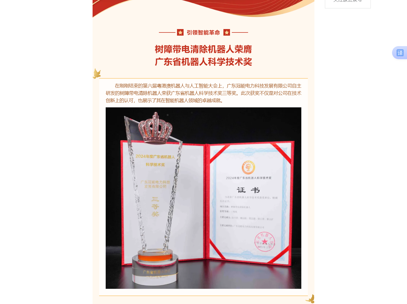 引領智能革命,樹障帶電清除機器人榮膺廣東省機器人科學技術獎