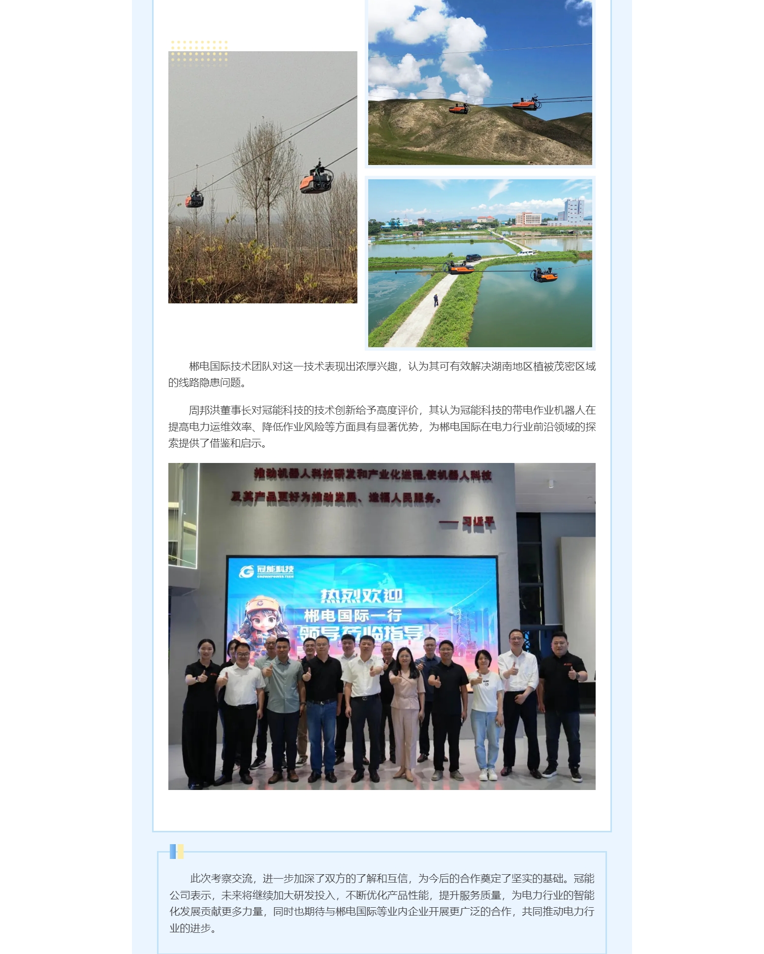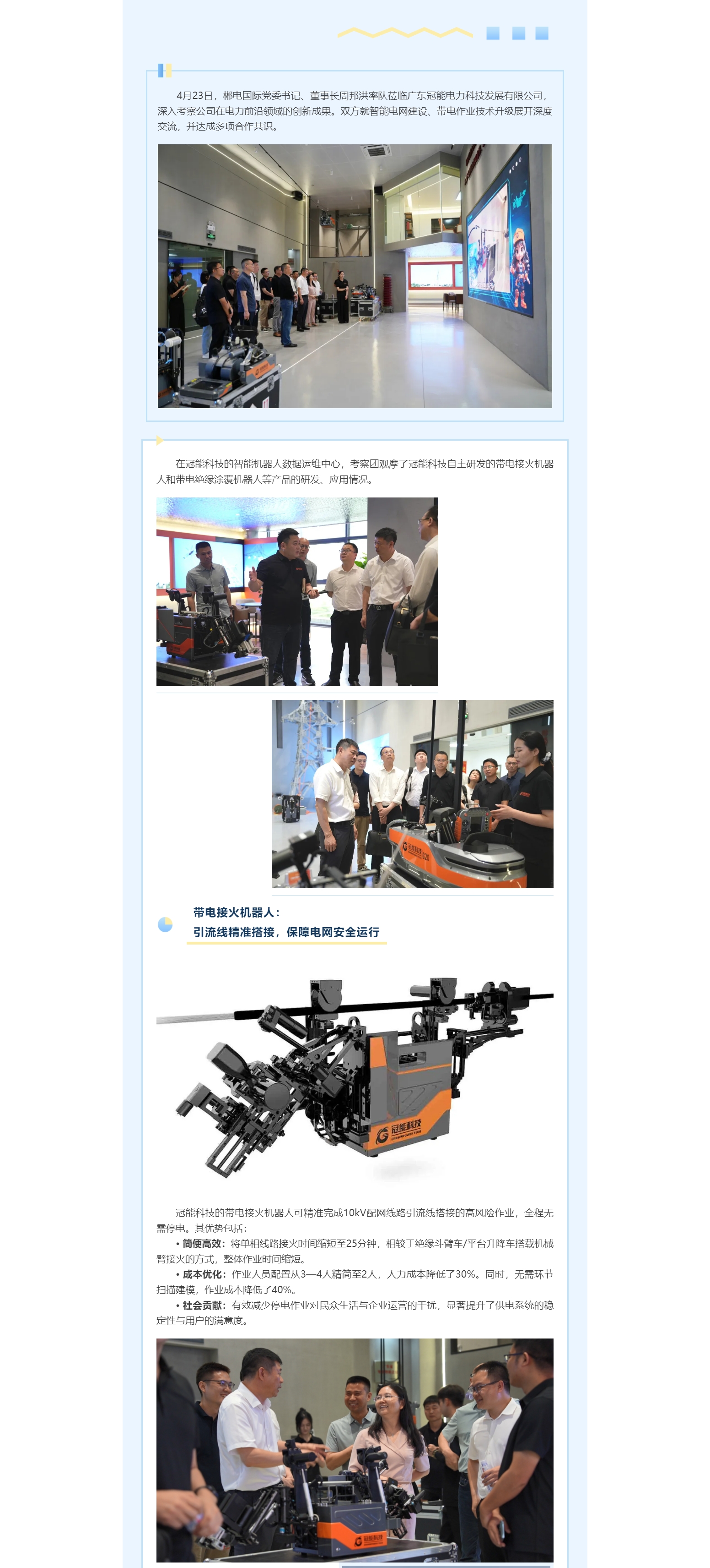 郴電國際考察團(tuán)與冠能科技會(huì)面,共探機(jī)器人協(xié)同帶電作業(yè)新技術(shù)