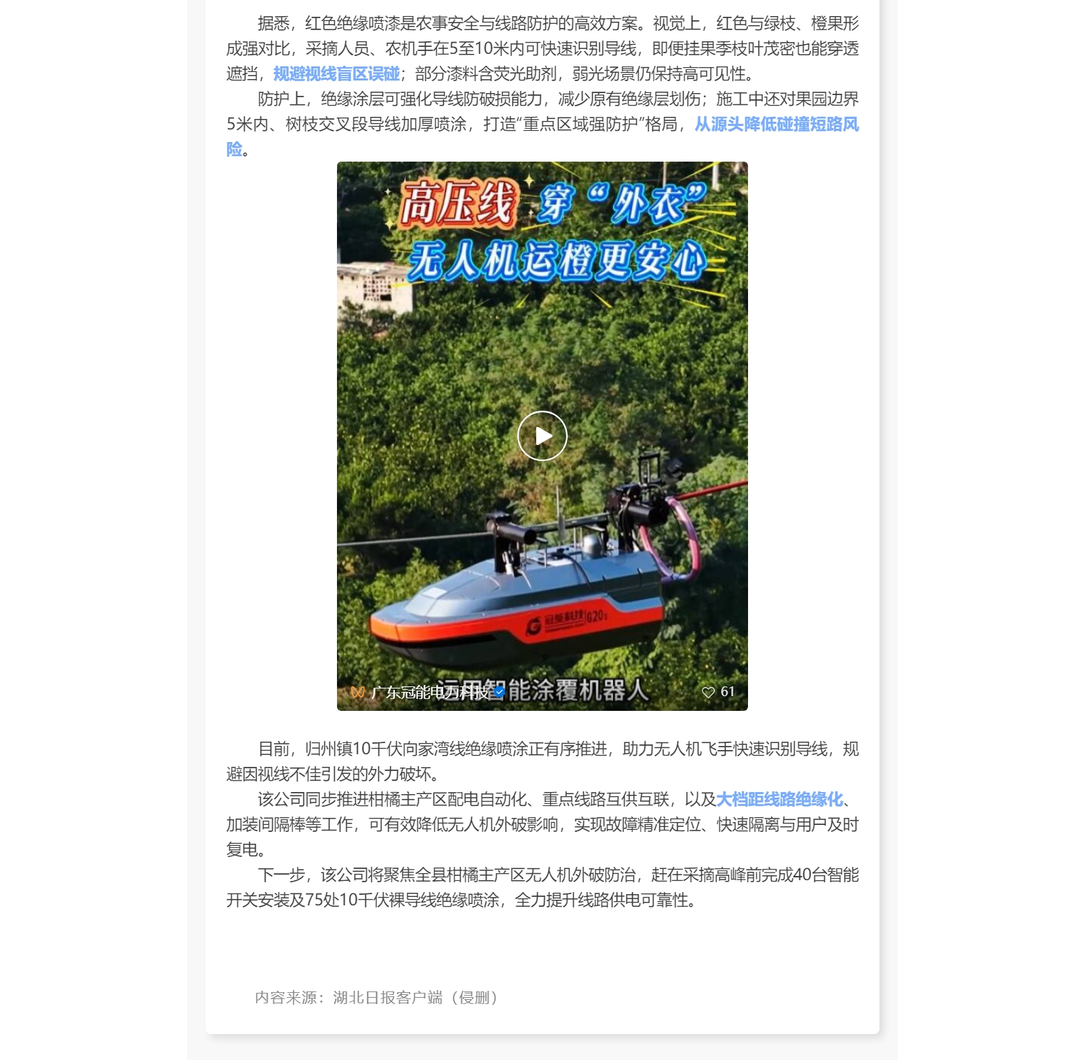 冠能涂覆“黑科技”挺進荊楚,為果園裸導線穿上“絕緣衣”